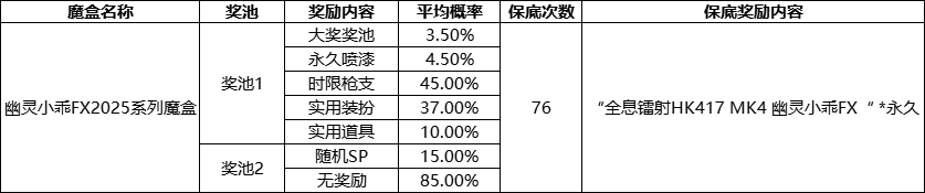 幽灵小乖FX魔盒概率公示: