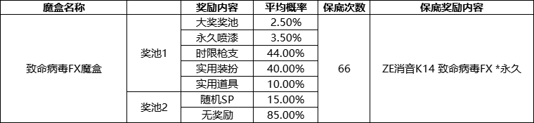 致命病毒FX魔盒概率公示: