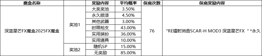 深蓝星芒FX魔盒2025系列魔盒概率公示: